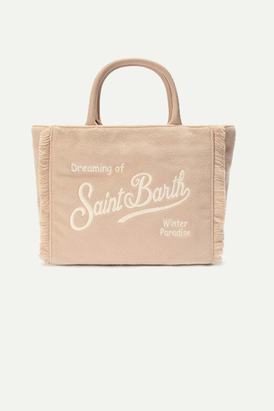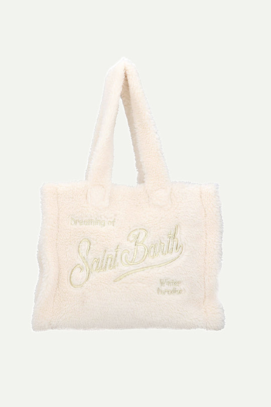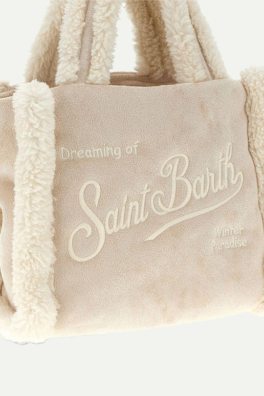 תיק יד עם רקמת Saint Barth בצבע שמנת