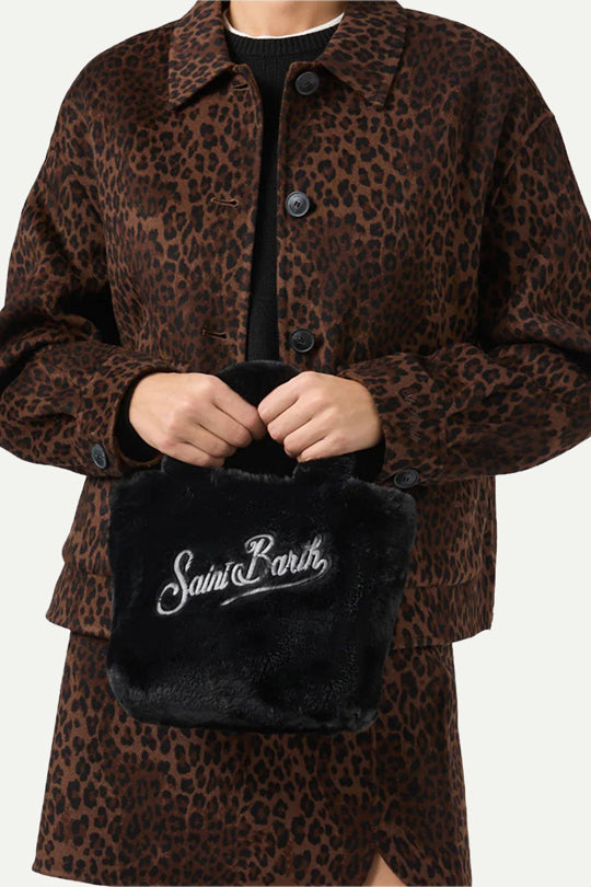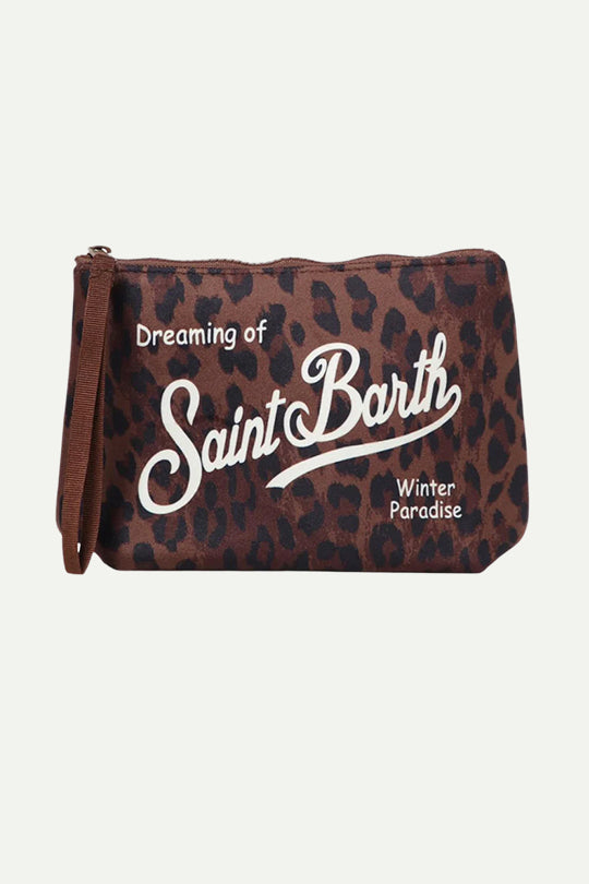 תיק קלאץ' עם רקמת Saint Barth בהדפס מנומר חום