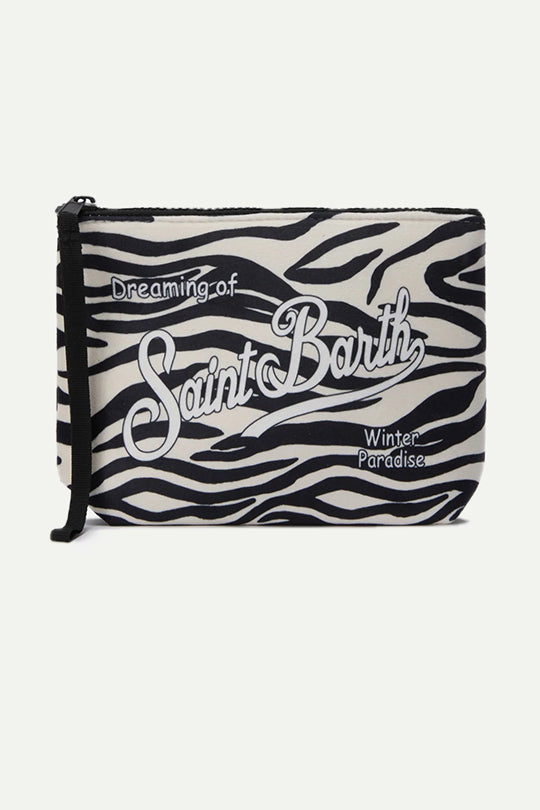 תיק קלאץ' עם רקמת Saint Barth בהדפס זברה