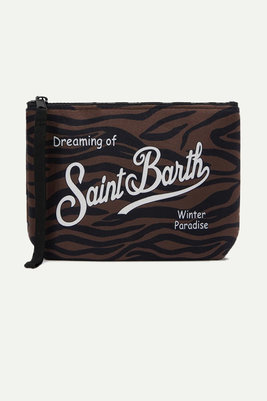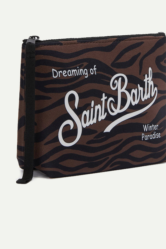 תיק קלאץ' עם רקמת Saint Barth בהדפס זברה חום