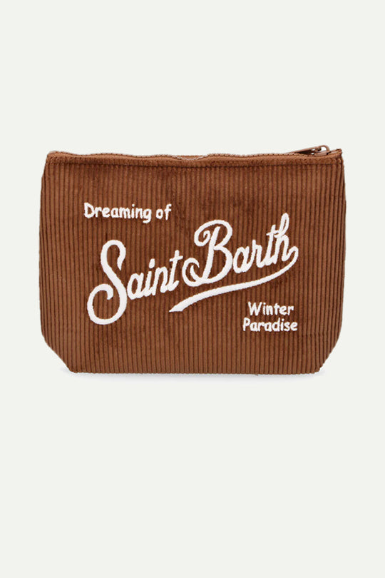 תיק קלאץ' עם רקמת Saint Barth בצבע חום