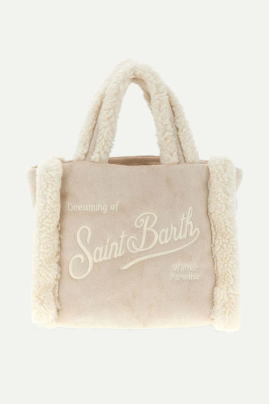 תיק POCHETTE בצבע בז' עם פרווה לבנה