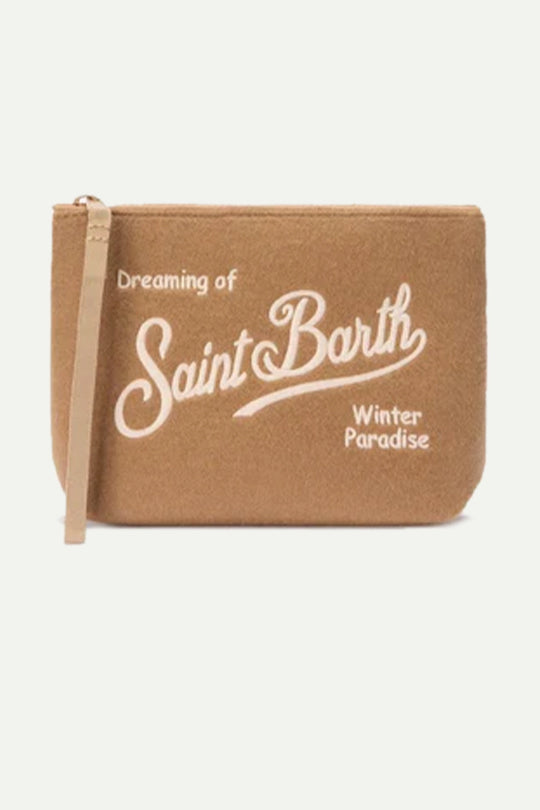 קלאץ' בצבע קאמל עם רקמת Saint Barth