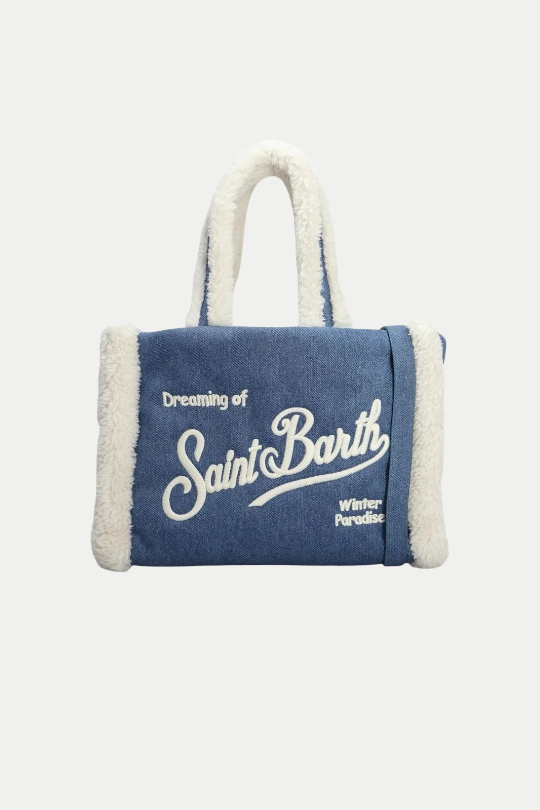 תיק HAND BAG WITH STRAP בצבע ג’ינס עם פרווה לבנה