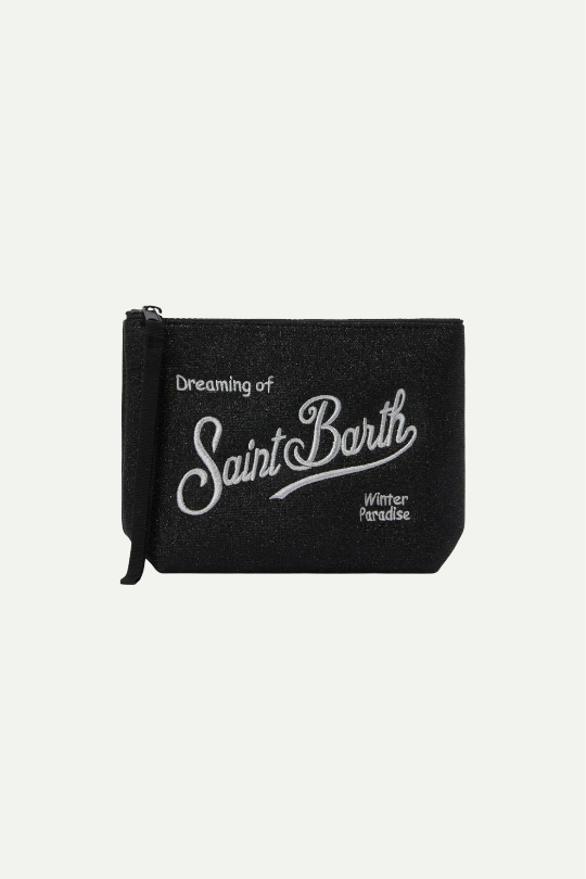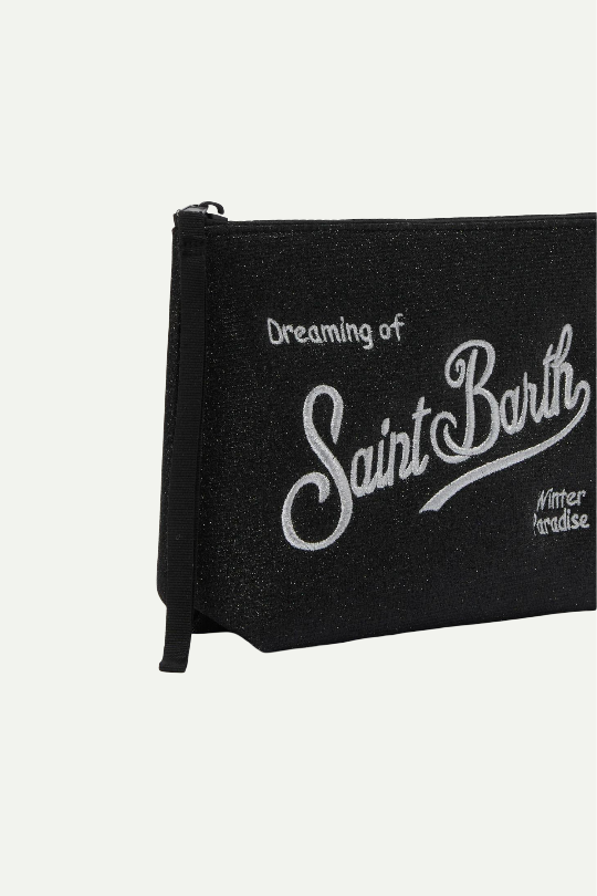 קלאץ' עם רקמת Saint Barth בצבע שחור
