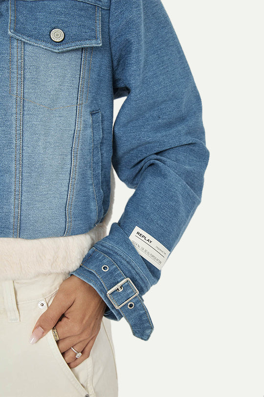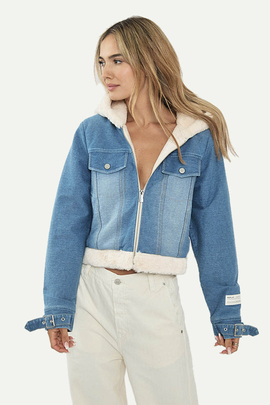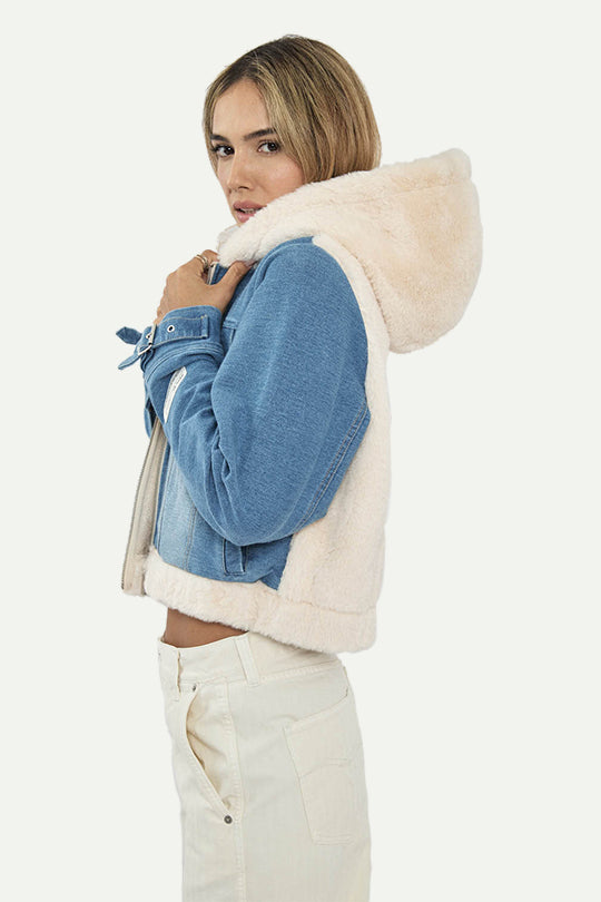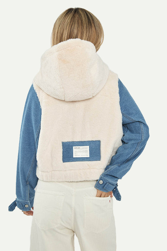 מעיל פרווה קצר לנשים בצבע קרם בשילוב ג’ינס כחול – לוק חורפי מושלם שמשלב חום וסטייל. המעיל כולל בטנת פרווה רכה, כיסי חזה עם כפתורים, וסגירת רוכסן נוחה. הגזרה הקצרה והדיטיילים בגימור הופכים אותו לפריט בולט שמתאים מעל כל לוק – מג’ינס יומיומי ועד מכנסיים אלגנטיים.