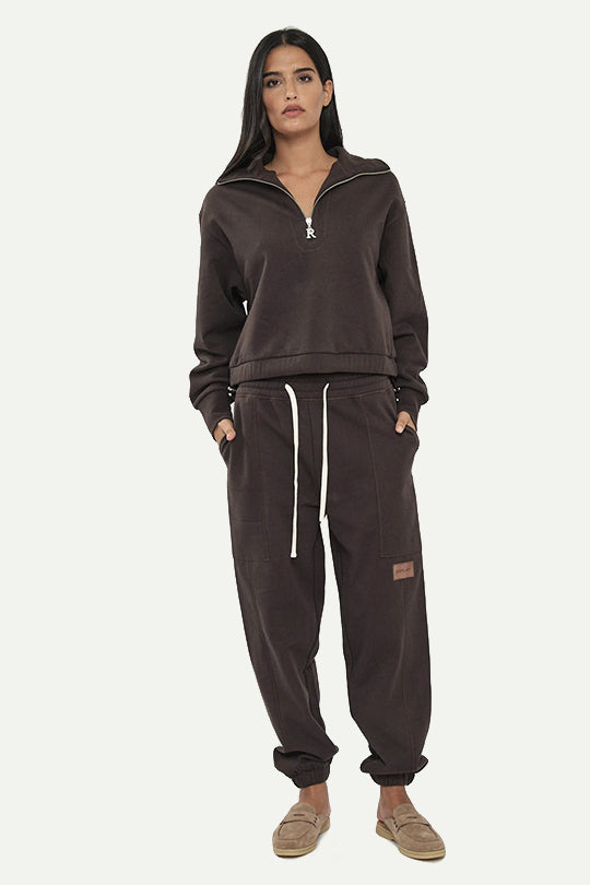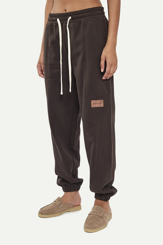 מכנסי טרנינג לנשים מבד אינטרלוק איכותי ורך למגע, בגזרה נוחה ורפויה. מגיעים בצבע חום כהה אלגנטי, עם מותן אלסטית ושרוך מתכוונן לנוחות מקסימלית. כוללים כיסים צדדיים וסיומי ריב בקרסוליים למראה מוקפד. לוגו REPLAY בגוון תואם מוסיף נגיעה ממותגת ומעודנת. מושלם לשילוב עם קפוצ’ון או סווטשירט תואם למראה יומיומי בסטייל.