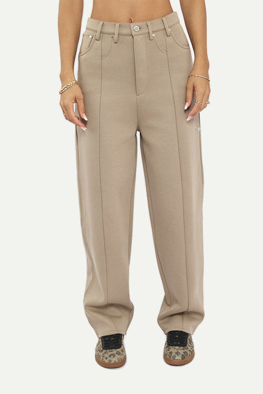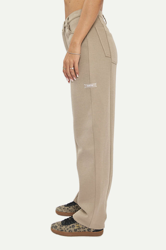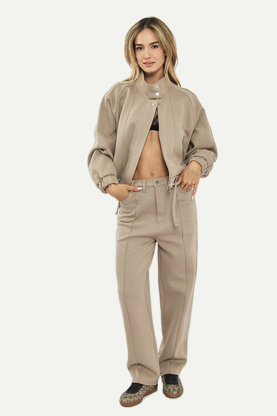 מכנסיים רחבים לנשים בגוון בז' בעיצוב מודרני ונוח. כיסים קדמיים פונקציונליים ותפרים אורכיים להארכת המראה. עשויים מבד איכותי ורך למגע, המעניק תחושת נוחות לאורך כל היום. מתאימים לשילוב בלוק יומיומי מתוחכם או למראה קז'ואלי עדין בעונות המעבר.