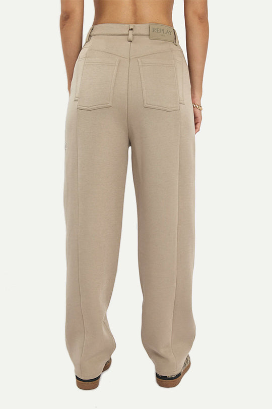 מכנסיים ארוכים בגזרה רחבה בצבע בז'