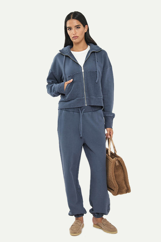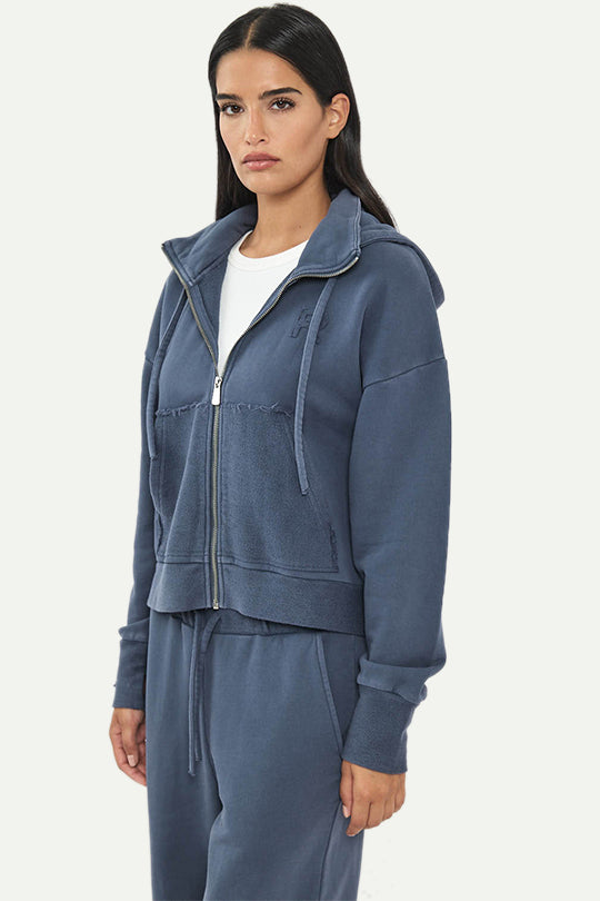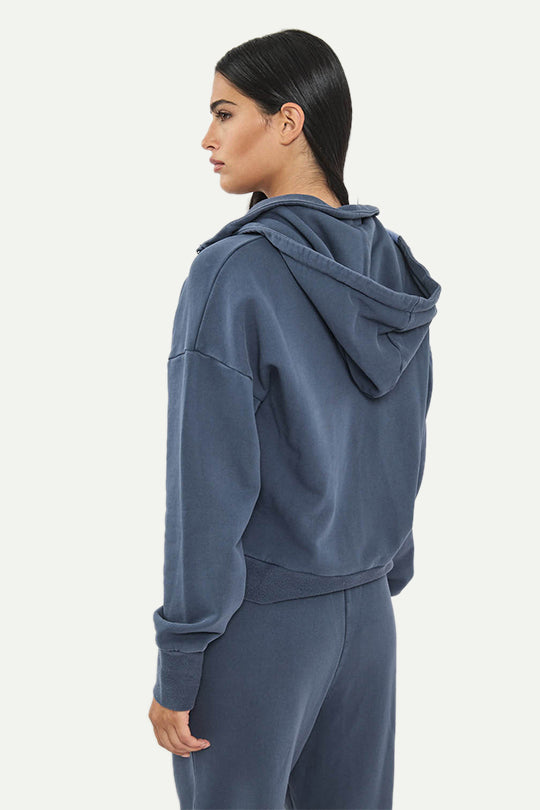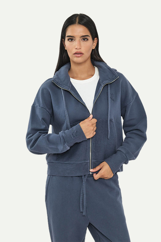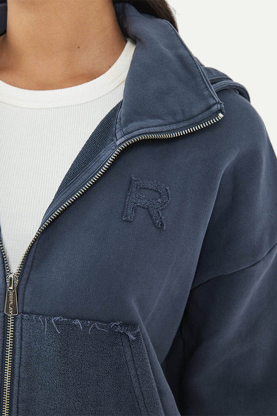 קפוצ'ון לנשים בגוון כחול במראה וינטג’ שטוף, עם רוכסן קדמי מלא, כיסי קנגורו מפוצלים ושרוך מתכוונן. לוגו R עדין בחזה וגימורי פרום שמוסיפים טוויסט אורבני. עשוי בד כותנה נעים ורך בגזרה משוחררת – מושלם ליום־יום ולשכבות קלילות.