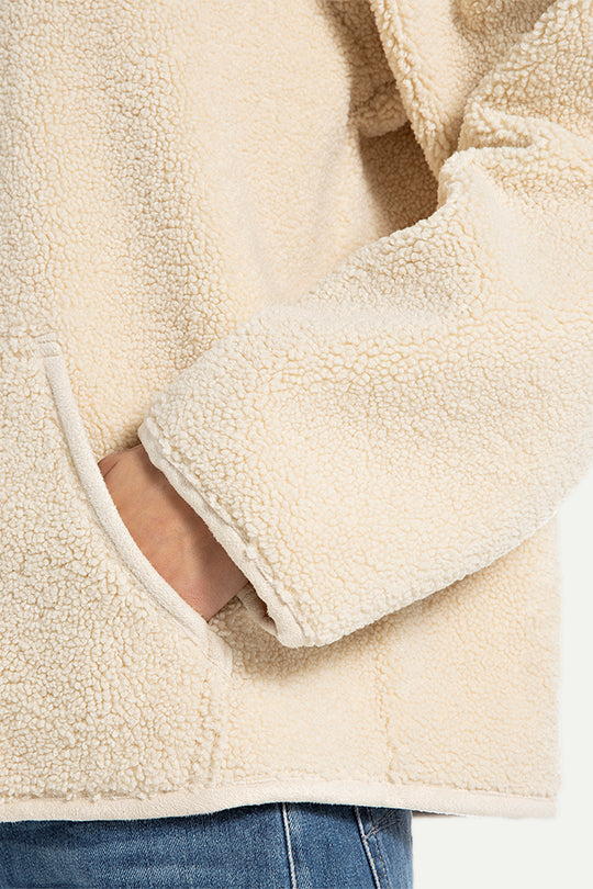 מעיל פרוותי עם קפוצ׳ון בצבע קרם