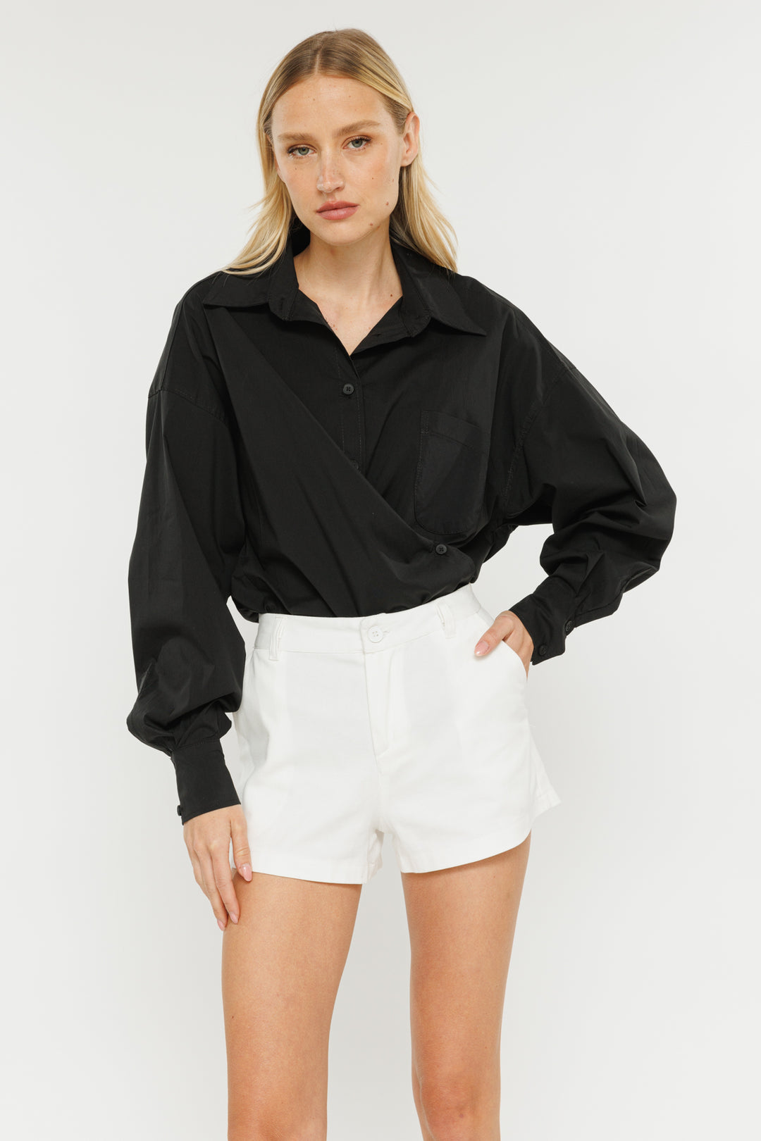 הקולבריישן של עמית פיליפ ורזילי סוף סוף כאן והוא כולל את כל הפריטים הכי סטייל לעונה הקרובה. חשוב שתדעי שלא יהיה לך קל לבחור אבל אנחנו פה בשבילך ולעזרתך, מוזמנת להתייעץ. הכירי את חולצת הקריס-קרוס ההיסטרית שמצד אחד עונה על הפרמטרים של מכופתרת אלגנטית ומנגד מביאה סגנון פרשי נועז ועדכני שישתלב במגוון לוקים במלתחה שלך. לחולצה שרוולים ארוכים כפתרה בחזית שנסגרת באופסייד וצווארון מתקפל.