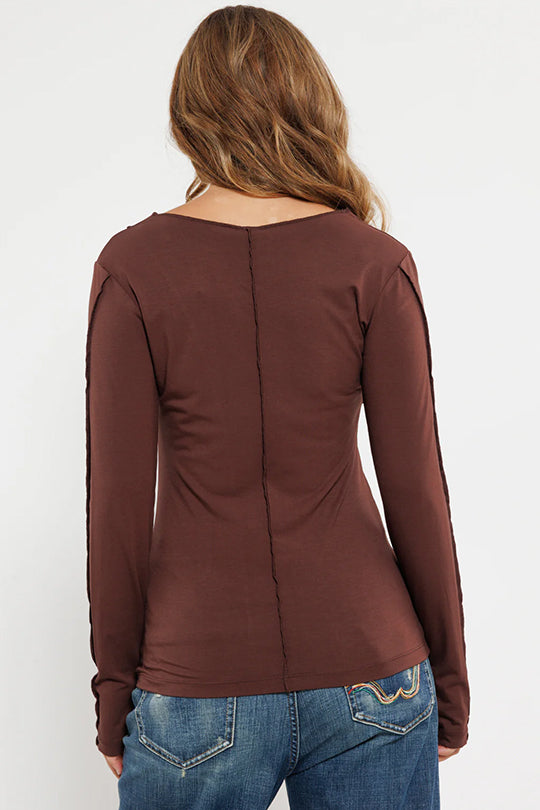 חולצת לייקרה ארוכה לנשים בצבע חום