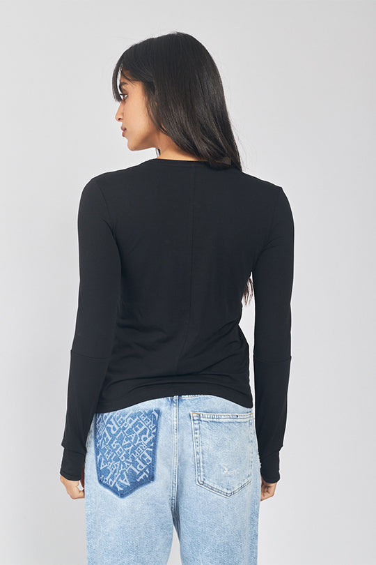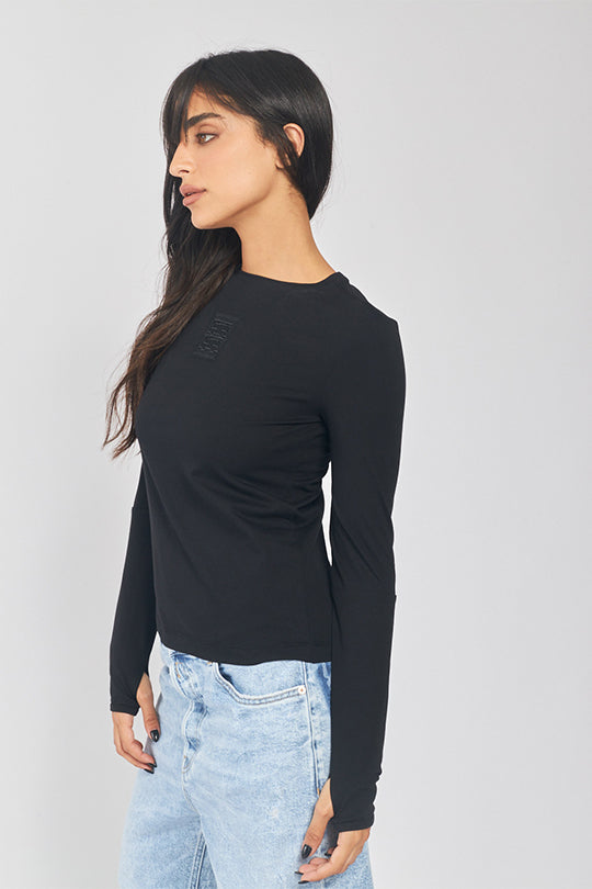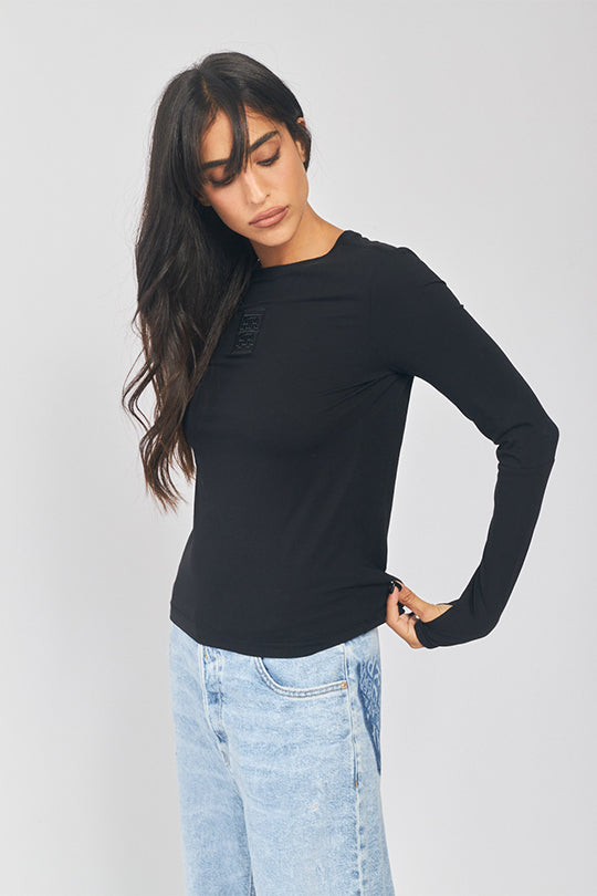 חולצה ארוכה מבד כותנה עם לוגו רקום בחזית. לחולצה מפתח צוואר עגול ושרוולים ארוכים.