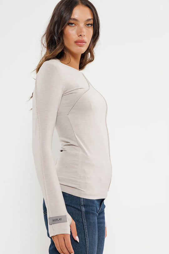 W SPANDEX LYCRA LS SHIRT 25174865 BEIGE 01