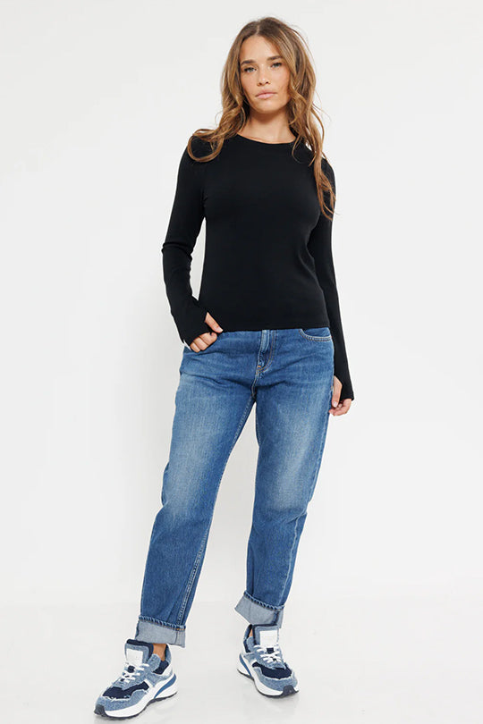 טי שירט ארוכה לנשים בעיצוב פשוט ומודרני, מושלמת לכל מזג אוויר. החולצה מגיעה עם שרוולים ארוכים ובד נעים שמבטיח נוחות לאורך כל היום. קל לשלב עם מכנסיים ג'ינס או חצאיות, מה שהופך אותה לפריט חובה בכל ארון.