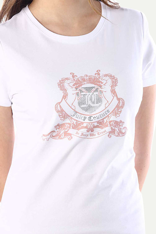טי שירט קצרה עם מפתח צוואר עגול ושרוולים קצרים. לחולצה הדפס בחזית.