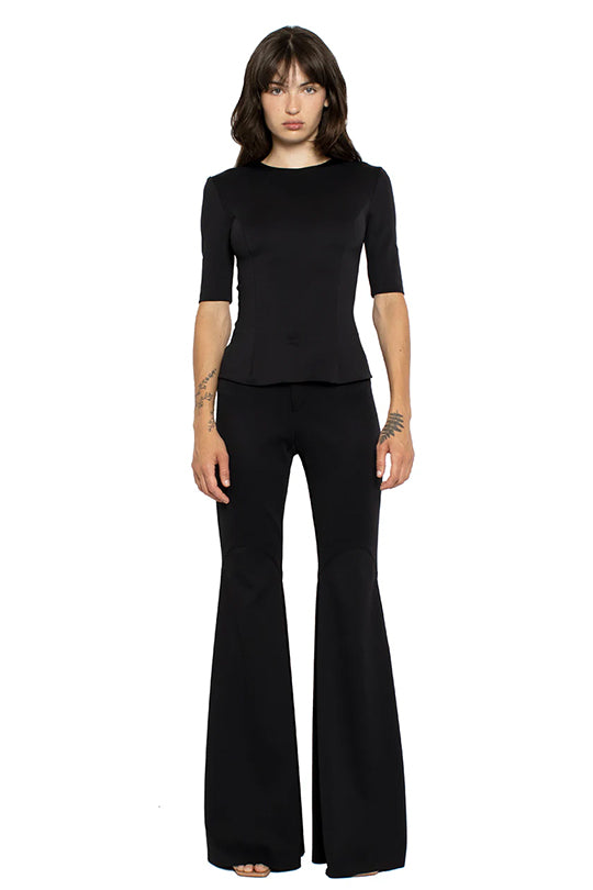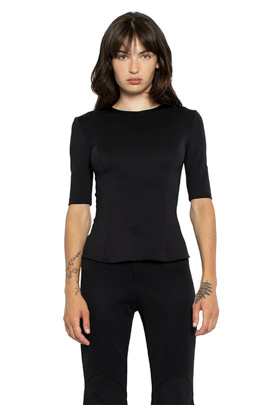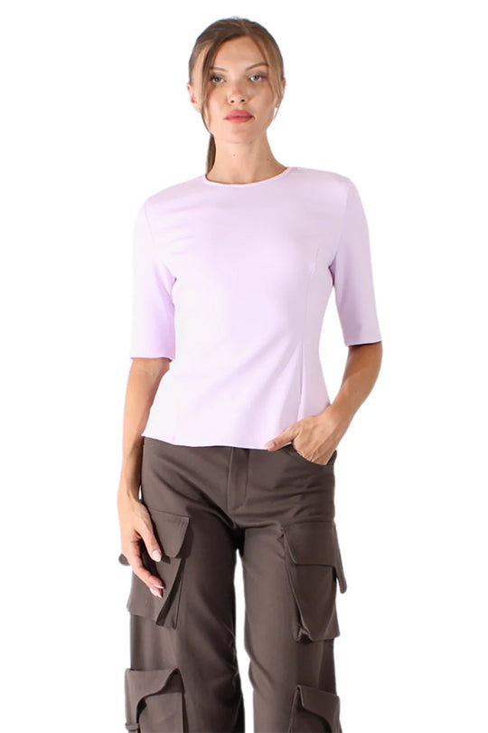 שילוב מדויק של בייסיק ושיק, שלא תרצי להוריד. חולצה בגדרה צמודה, מבד נעים ונמתח עם מפתח עגול ושרוולים באורך המרפק. תתאים מהבוקר עד הערב, רק תחליטי אם בא לך לוק מחויט ואלגנטי או קליל ויומיומי.