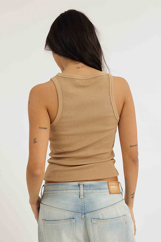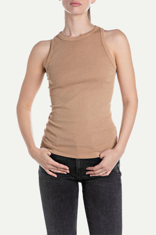 גופייה מחטבת לנשים בגוון חום שוקולד עשיר, עשויה בד ריב נמתח ונעים למגע. בגזרה צמודה עם כתפיות רחבות ומפתח צוואר גבוה ליצירת מראה נקי ועדכני. מתאימה לשילוב מושלם עם ג’ינס, חצאית או מכנסיים מחויטים – ליום יום או ערב בסטייל נינוח.