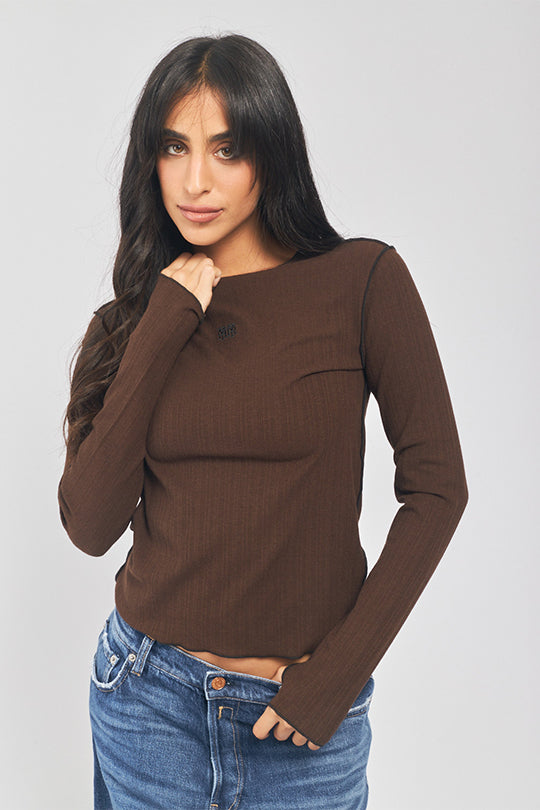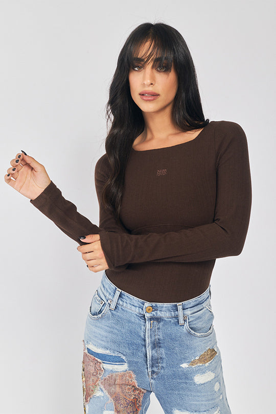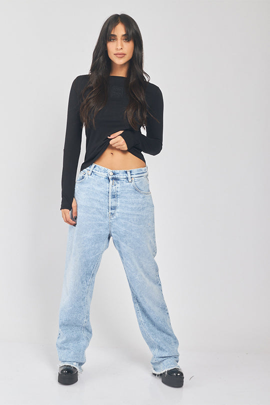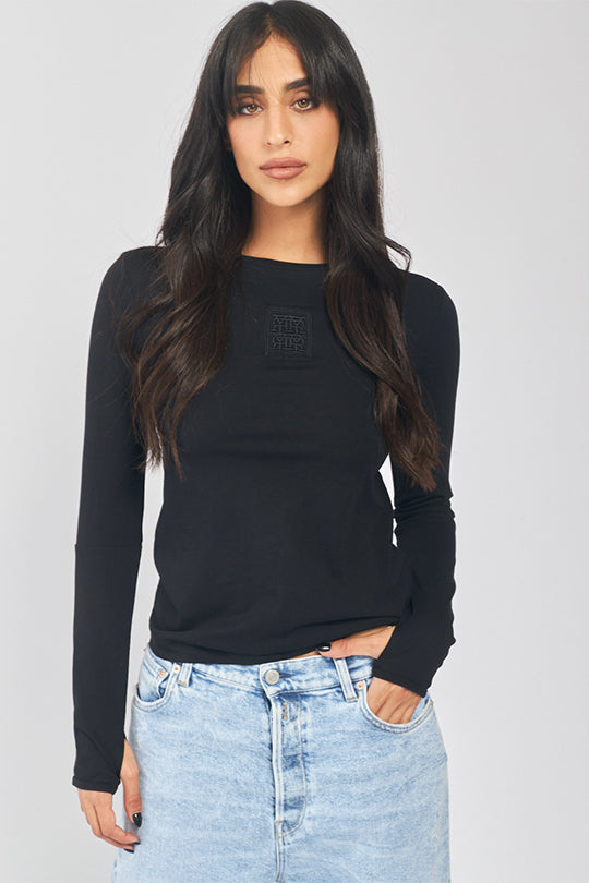טי שירט ארוכה לוגו רקום בצבע שחור
