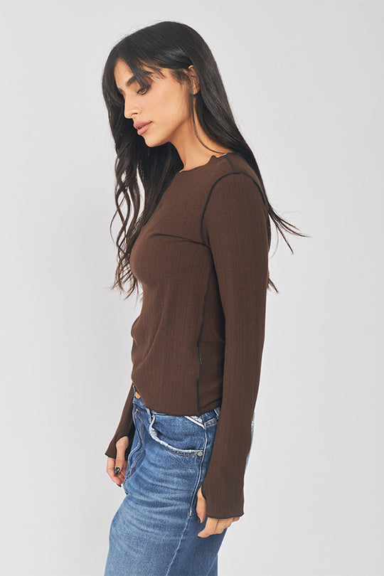 חולצת פשתן מכופתרת Cut Out Sleeves בצבע חום