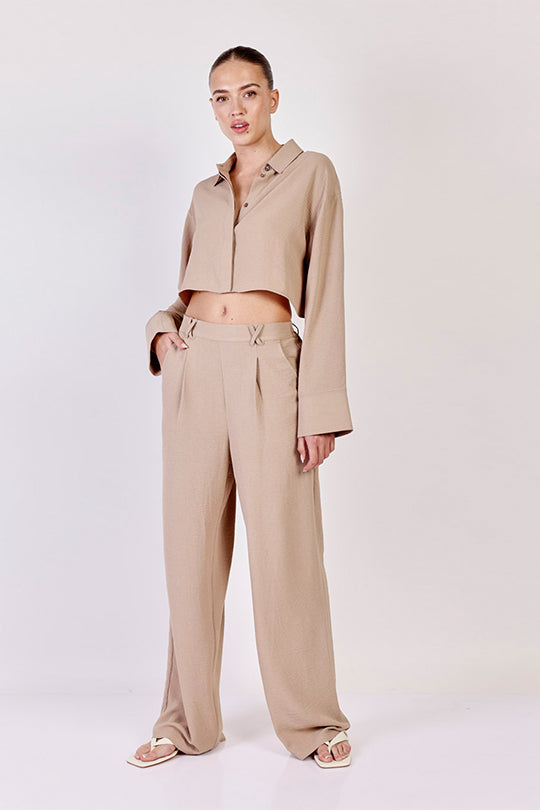 חולצת פשתן מכופתרת Big Cuff בצבע בז'