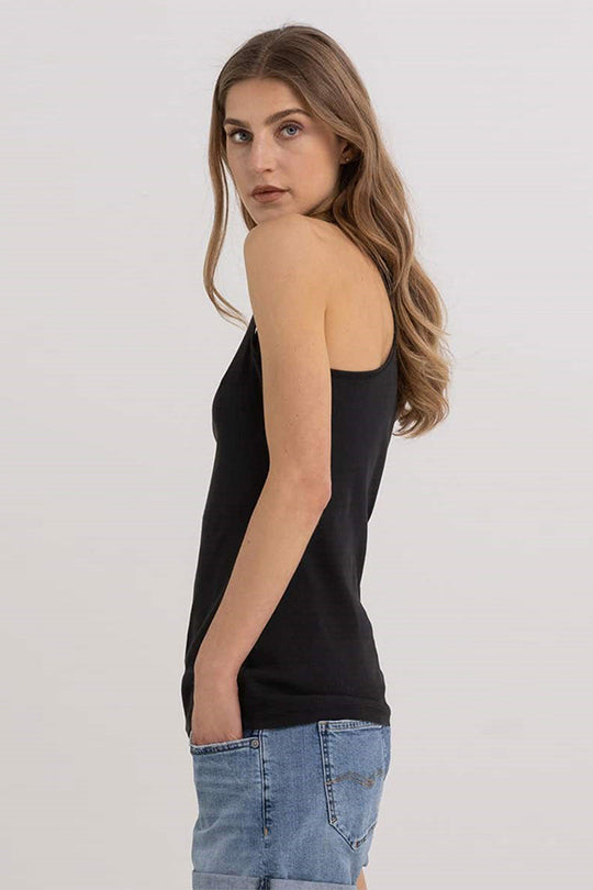 חולצת קרופ מכופתרת Linen בצבע שחור