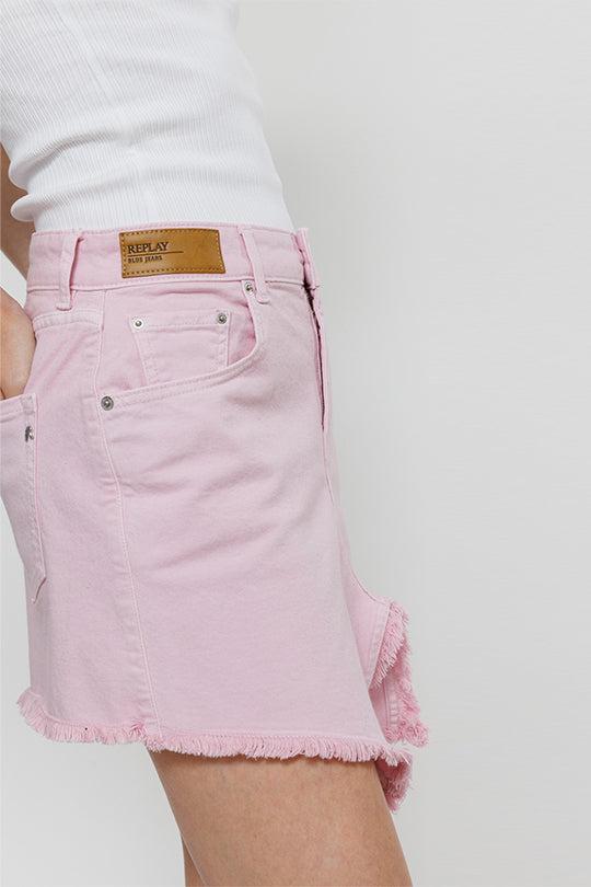 חצאית מיני מבד ג'ינס. לחצאית מראה מכנסי ג'ינס.