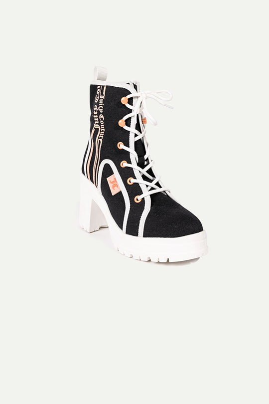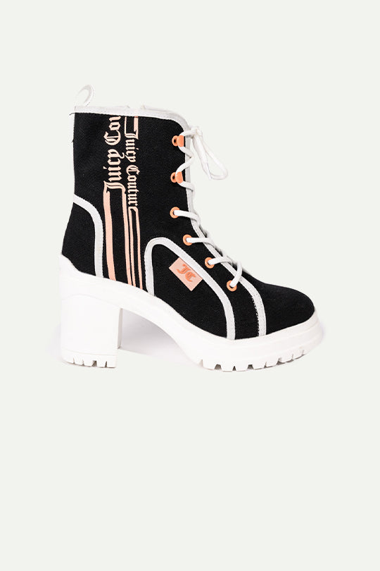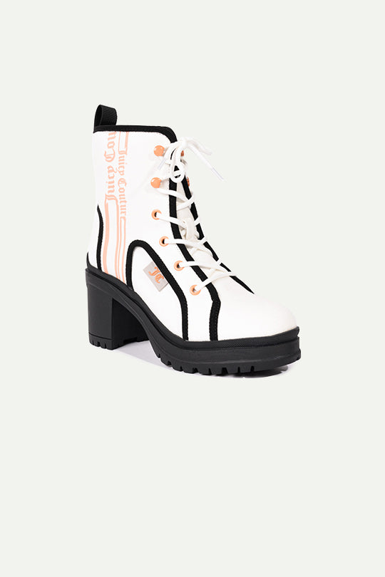 מגפוני עקב בסגנון נעלי הרים עם סוליית טרקטור ולוגו בגפות הצידיות.