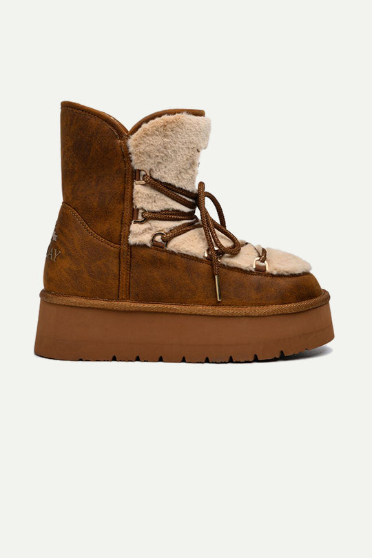 מגפי פלטפורמה מרופדים בצבע חום