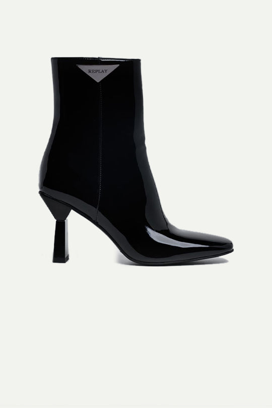 מגפוני לק עם עקב בצבע שחור