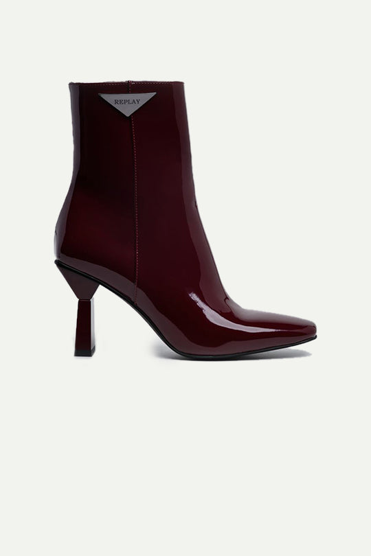 מגפוני לק עם עקב בצבע בורדו