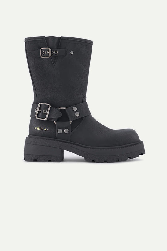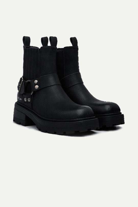 מגפיים עם אבזם בצבע שחור