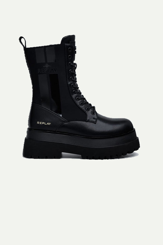 מגפוני פלטפורמה עם שרוכים בצבע שחור