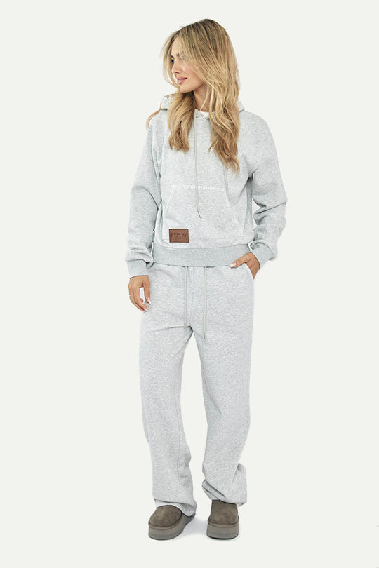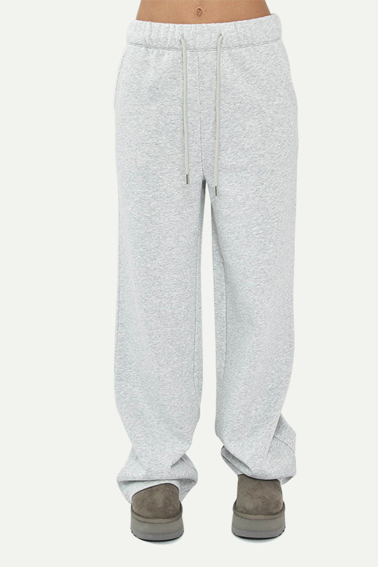 מכנסי טרנינג בגזרה ישרה עם מותן אלסטית ושרוך קשירה. תפרים לבנים בצידי הכיסים מוסיפים טאץ’ אופנתי. עשויים מבד רך ונעים למגע, מושלמים לשילוב עם קפוצ’ון תואם ללוק נינוח וסטייליסטי.