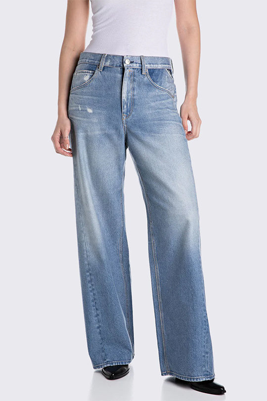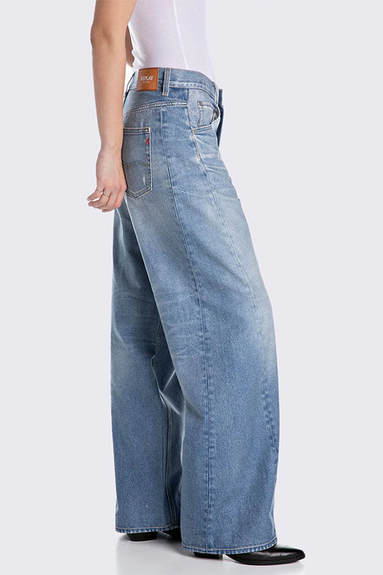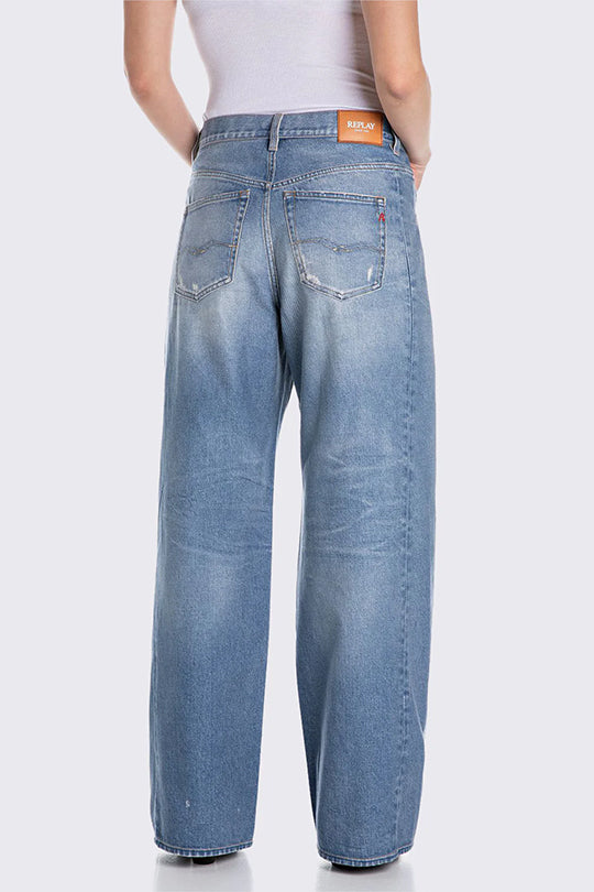 ג'ינס אופנתי לנשים בגזרת רחבה ומשוחררת, עם מותן גבוהה המחמיאה לקווי הגוף ויוצרת מראה אלגנטי ומוארך. בצבע כחול בהיר עם שטיפות עדינות ודיטיילים קרועים קלים למראה טרנדי ולא מתאמץ. מושלם לשילוב עם טופ צמוד או חולצה מחויטת ליצירת לוק קז'ואלי או מתוחכם.