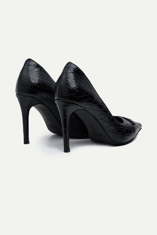 נעלי עקב שפיץ אלגנטיות בטקסטורת קרוקו (דמוי-עור), גזרה קלאסית עם עקב סטילטו גבוה ומראה יוקרתי. רפידה נוחה וגפה מחמיאה לקו הרגל. מושלמות לערב, לאירועים או למראה אלגנטי עם ג’ינס.