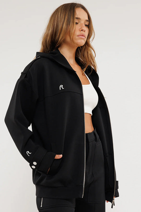 קפוצ'ון נשים אופנתי עם רוכסן קדמי שמוסיף נוחות וסטייל לכל לוק. עשוי מבד אינטרלוק איכותי ונעים למגע, בצבע שחור קלאסי שמתאים לכל אאוטפיט. העיצוב הרחב והנינוח מבטיח מראה מודרני ורענן, מושלם לימים הקרירים.