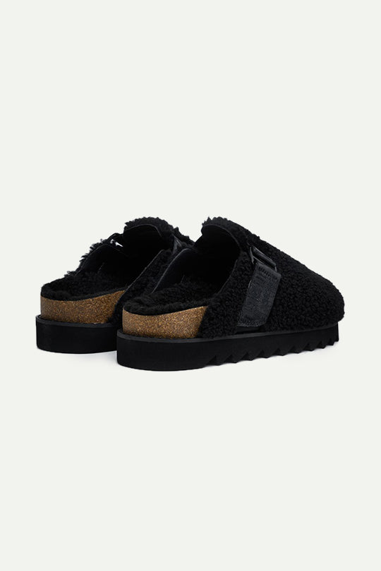 כפכפי מיול לנשים עם גפת “טדי” פרווה סינתטית רכה, רצועה מתכווננת עם אבזם וקצה ממותג. מדרך דמוי-שעם תומך, סוליית EVA שחורה קלה עם פרופיל גלי לאחיזה. נעילה מהירה ונוחה – מתאימות לשימוש בבית ובחוץ.