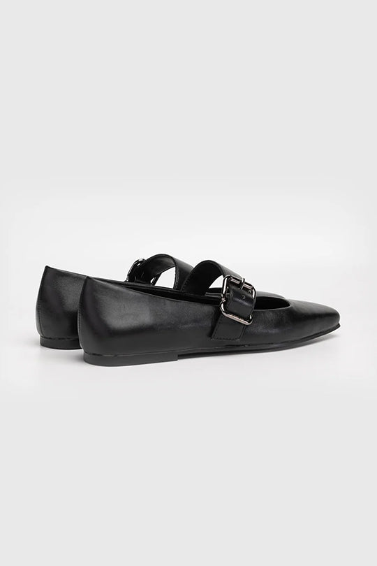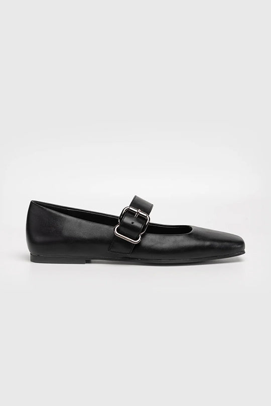 נעלי בלרינה שחורה לנשים עם רצועה ואבזם