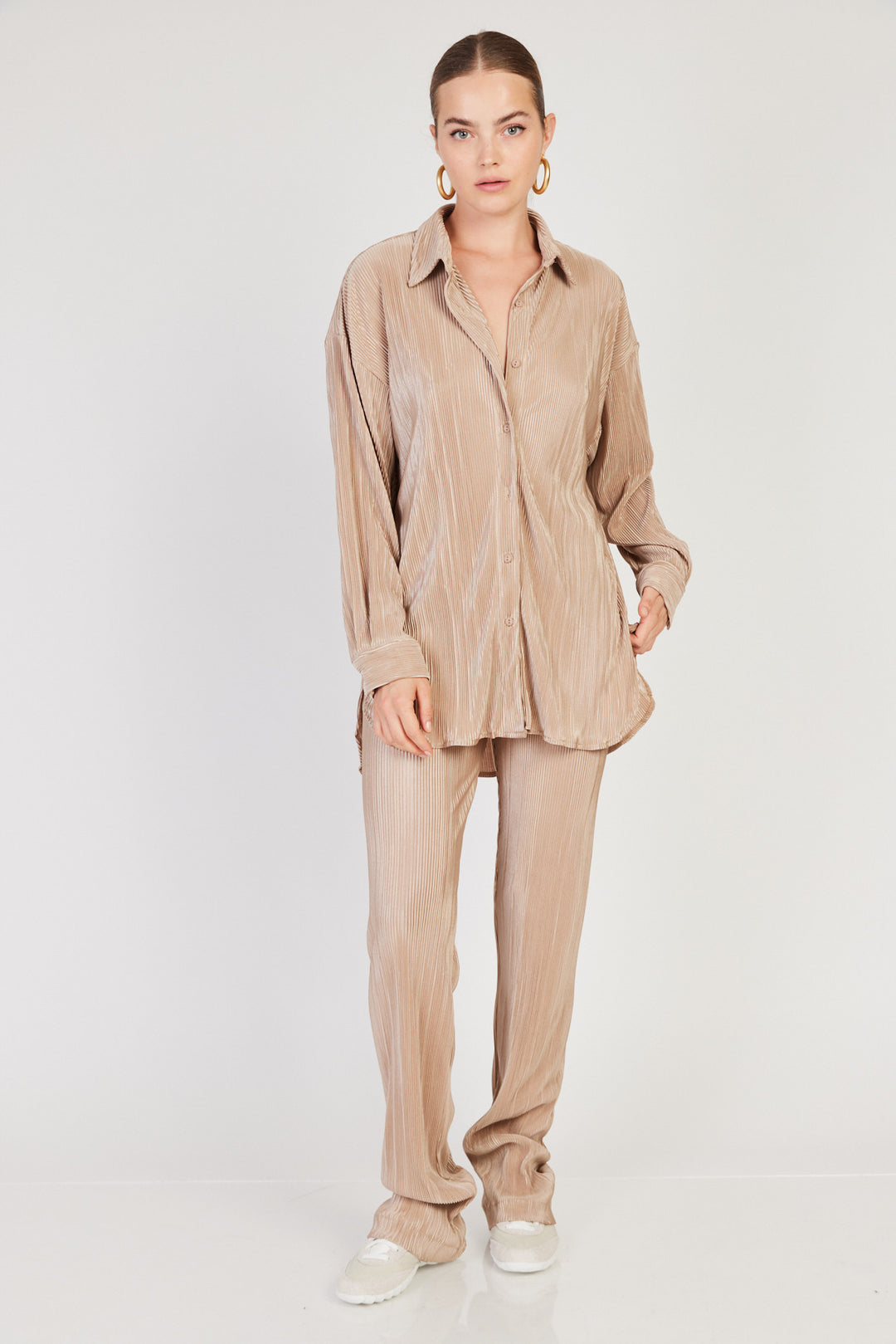 מכנסי ANYA בגזרה רחבה בצבע בז'