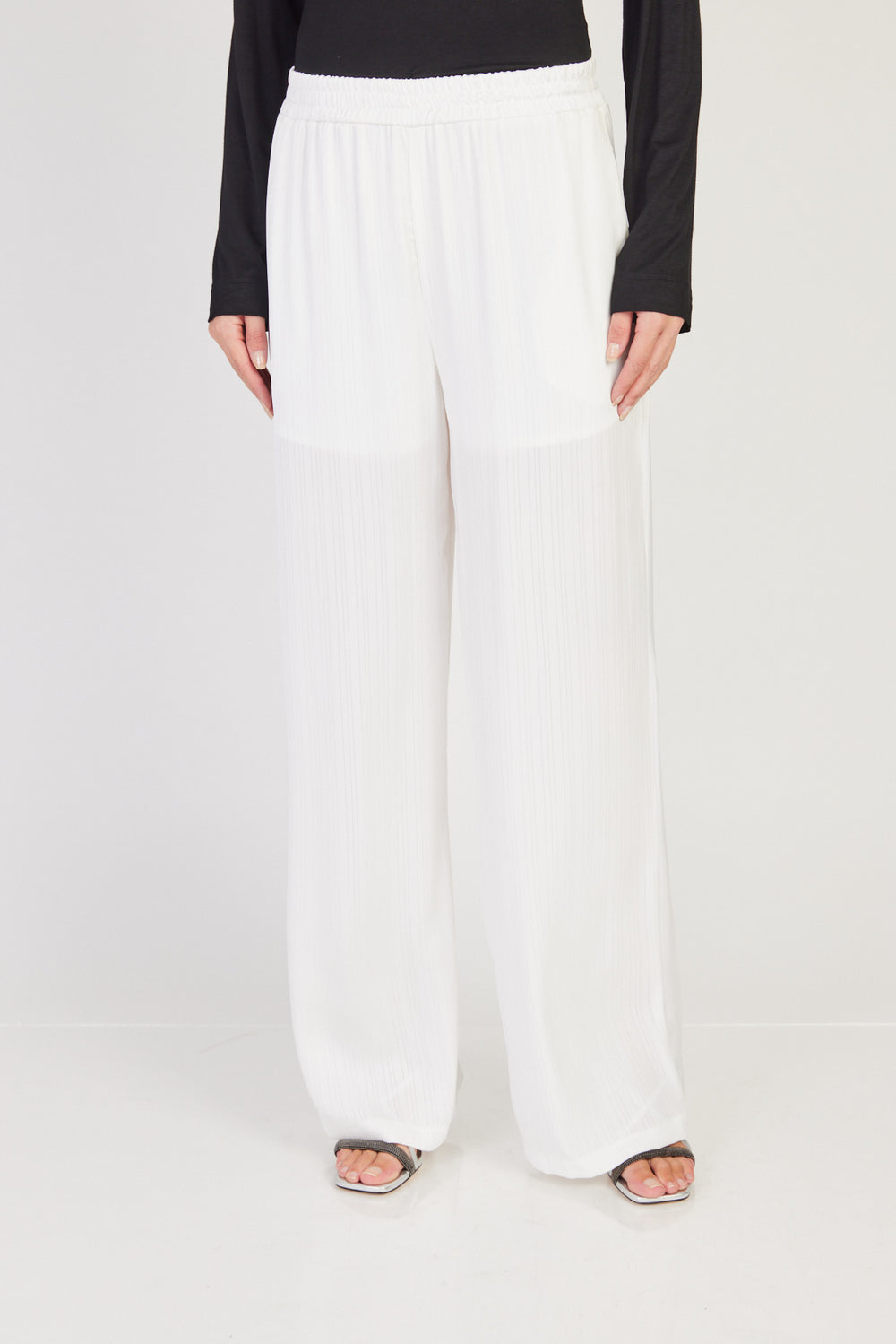 מכנסי בד בגזרה רחבה Moly בצבע שמנת