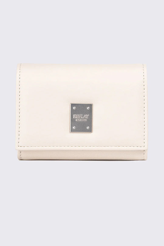 ארנק קומפקטי בצבע קרמל עם רוכסן ולוגו מוזהב