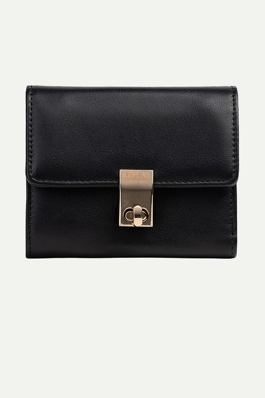 ארנק מלבני לנשים בצבע שחור עם גימור זהוב