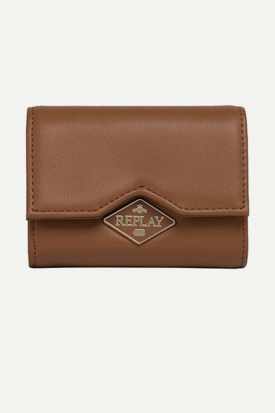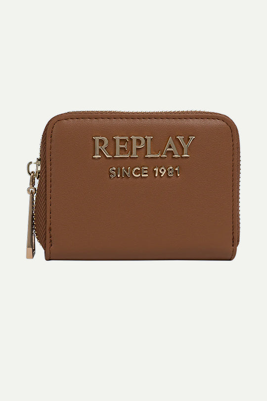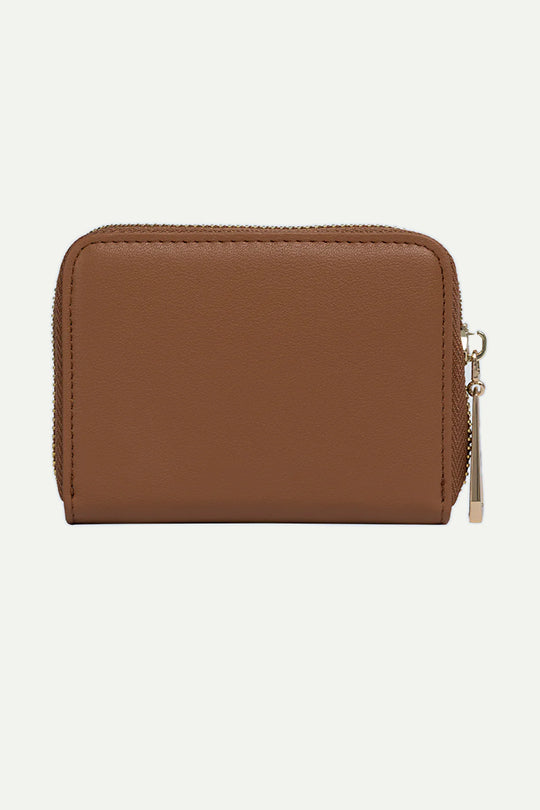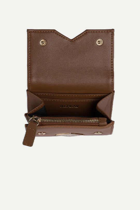 ארנק קומפקטי בצבע קפה עם רוכסן ולוגו מוזהב