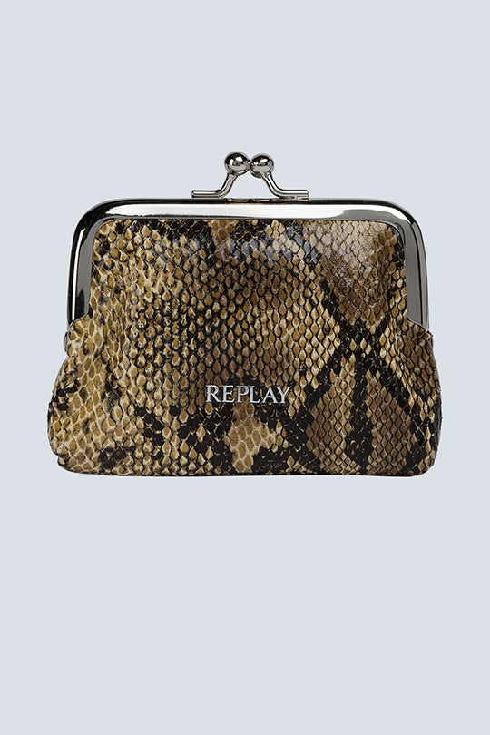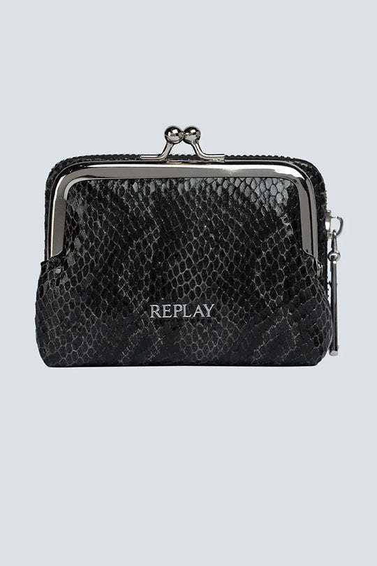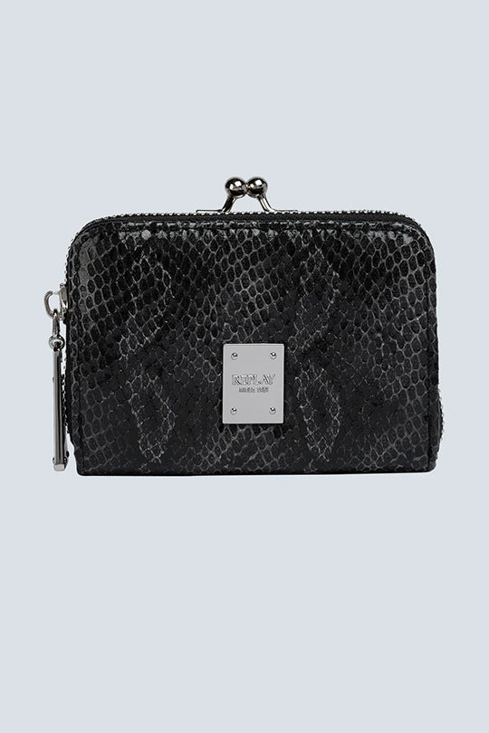 ארנק נשים שחור דמוי נחש עם סגירת נשיקה