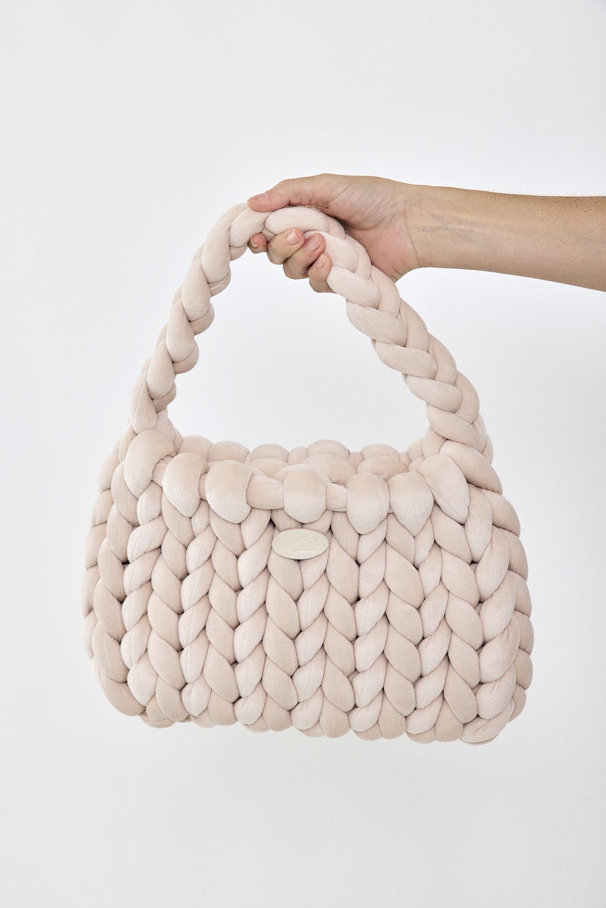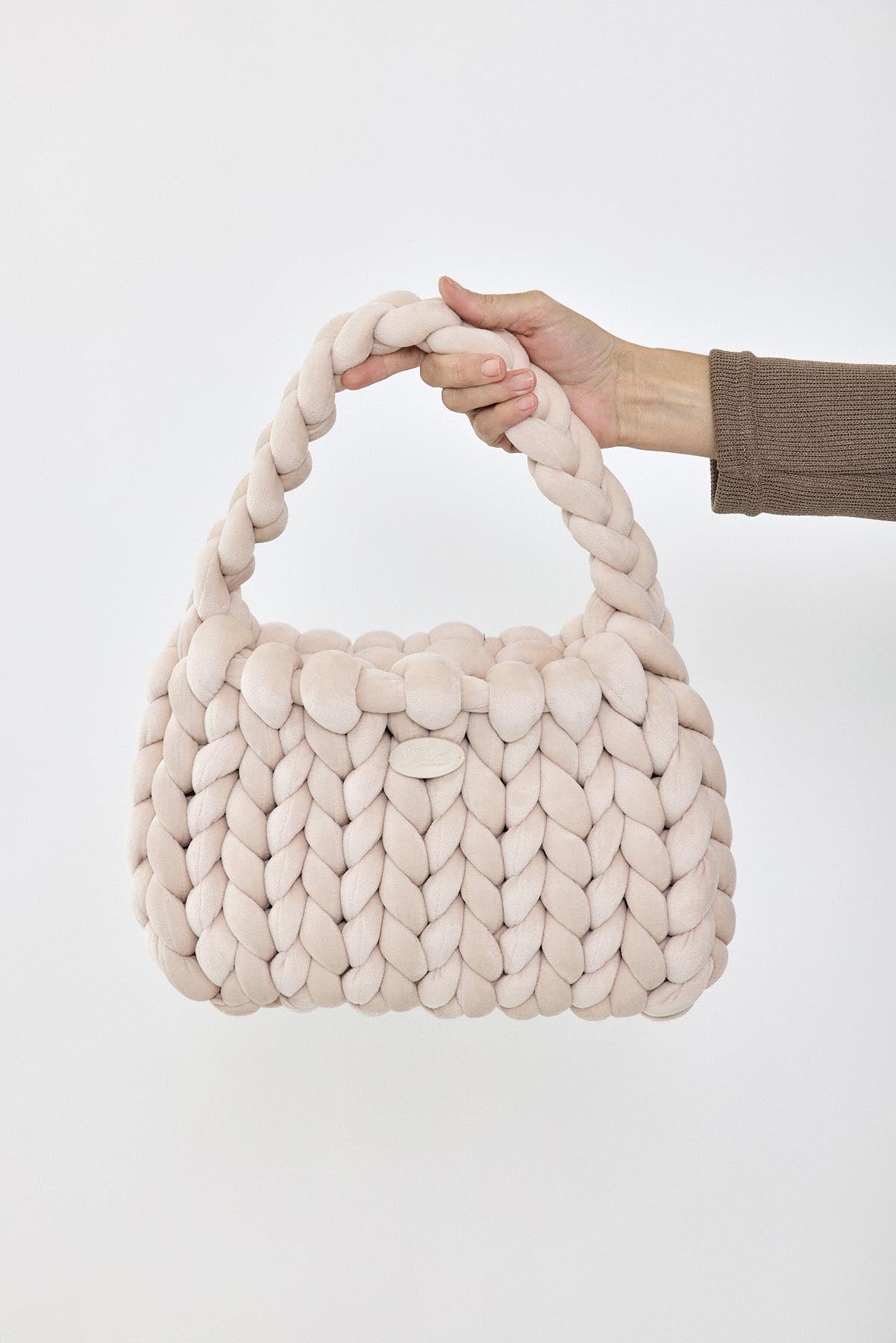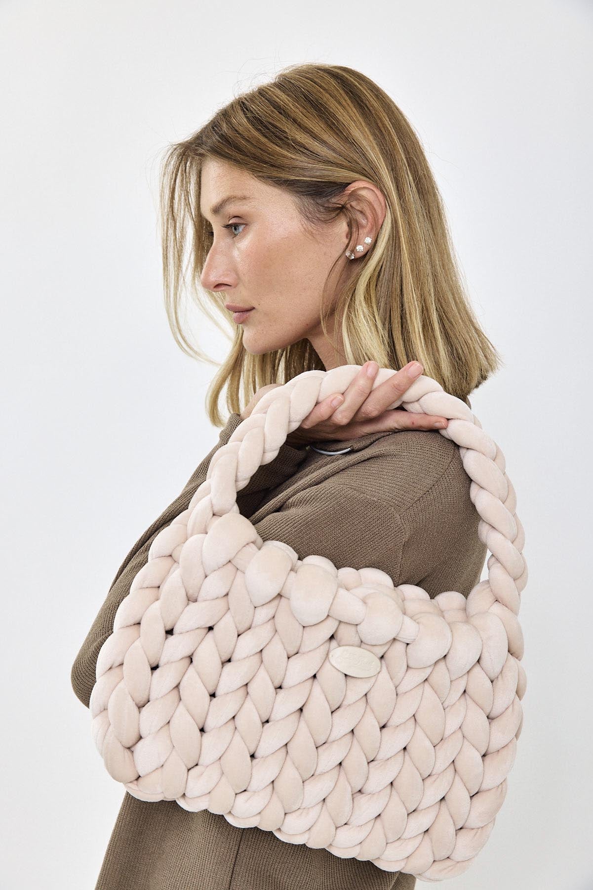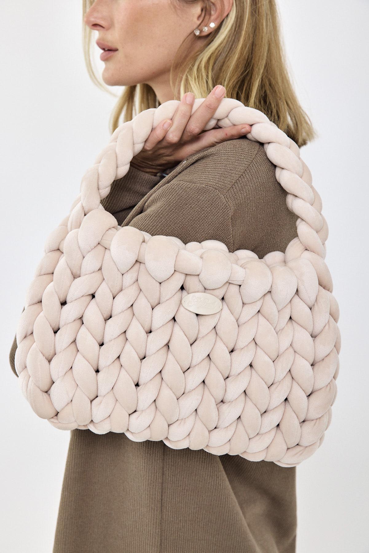 תיק ANAIS בעיצוב סרוג ייחודי בגוון קרם רך, מבית MC2. התיק עשוי מחומר פרוותי שמעניק לו מראה חם ומפנק, ומשלים לוק חורפי ואופנתי. מושלם לנשיאה נוחה וסטייל בולט לכל אירוע.