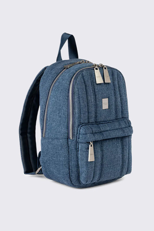 תיק גב קומפקטי לנשים עשוי בד ג'ינס בגוון כחול קלאסי. כולל תא ראשי מרווח עם רוכסן כפול, כיס חיצוני קדמי נוסף, ורצועות כתף מתכווננות לנוחות מירבית. שילוב מושלם של סטייל ופונקציונליות – מתאים לשימוש יומיומי בעיר, לעבודה או ליציאה קלילה.