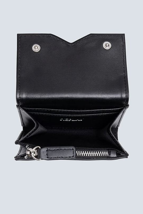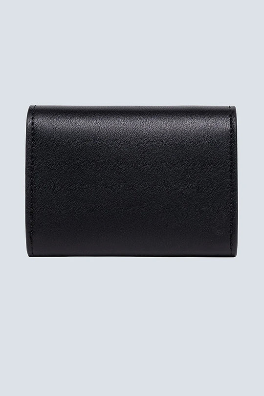 ארנק נשים אלגנטי בצבע שחור בעיצוב נקי ומדויק, עם לוגו מתכתי בחזית למראה יוקרתי. הארנק קומפקטי ונוח לנשיאה, מושלם ליום-יום וליציאות, ושומר על סדר בכרטיסים ובשטרות בצורה פרקטית.