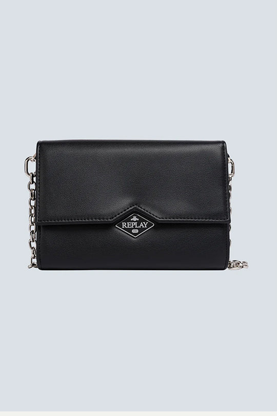 ארנק ערב לנשים בעיצוב אלגנטי ומוקפד בצבע שחור קלאסי, עם שרשרת מתכת לנשיאה על הכתף או באלכסון.